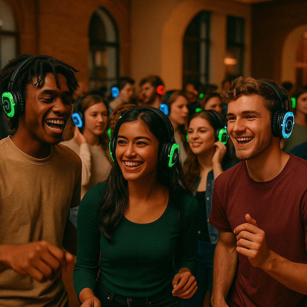 Whether it’s welcome week, an end-of-exam blowout, or a chill night on campus — silent disco brings students together in a fresh, fun, and noise-friendly way.