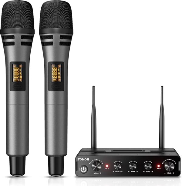【WIRELESS WIDE RANGE】Our receiver allows you to move freely during your performance with the karaoke microphone thanks to a range of 60 meters (without obstacles), making it perfect for indoor and outdoor events such as family karaoke, church gatherings, weddings, meetings or conferences. Enjoy unrestricted performance and presentation with this system