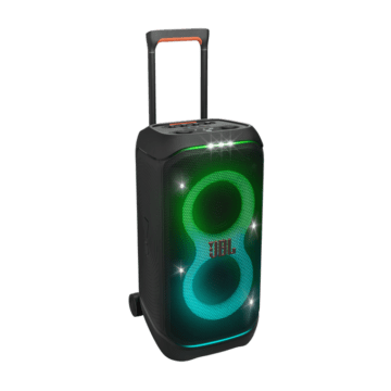 Avec la JBL PartyBox Stage 320, vous pouvez commencer à faire la fête à tout moment, n’importe où. Transformez n’importe quel espace, intérieur ou extérieur, en piste de danse. Le son JBL Pro puissant et les graves puissants remplissent une large scène et font bouger la foule, tandis qu’un jeu de lumière adaptatif de lumières étoilées tourbillonnantes, de traînées lumineuses et d’incroyables effets stroboscopiques synchronisés avec votre rythme leur en met plein la vue. Utilisez les entrées micro et guitare pour accentuer votre présence sur scène. Vous pouvez diriger le flux de la fête tout au long de la nuit avec des effets sonores interactifs amusants. La poignée télescopique solide et les larges roulettes larges robustes vous permettent d’emporter avec vous la JBL PartyBox Stage 320 pratiquement où vous voulez, et une fois sur place, la construction anti-éclaboussures empêchera qu’une petite averse ne vienne gâcher votre soirée. Mieux encore, elle offre jusqu’à 18 heures d’autonomie. Et si la fête bat son plein, il vous suffit de changer la batterie remplaçable pour continuer la musique. Pour une soirée encore plus grandiose, vous pouvez facilement connecter ou utiliser l’application JBL PartyBox pour connecter plusieurs enceintes compatibles JBL Auracast sans fil. Rassemblez les gens et améliorez l’expérience grâce à la JBL PartyBox Stage 320.